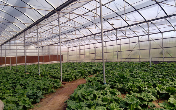日光溫室是依據(jù)溫室加溫設(shè)備的有無而分的一種溫室類型,即不加溫溫室。主要依靠日光的自然溫?zé)岷鸵归g的保溫設(shè)備來維持室內(nèi)溫度。一般采用較簡易的設(shè)施,充分利用太陽能,在寒冷地區(qū)一般不加溫進行蔬菜越冬栽培,而生產(chǎn)新鮮蔬菜的栽培設(shè)施日光溫室具有鮮明的中國特色。是我國獨有的設(shè)施。日光溫室的結(jié)構(gòu)各地不盡相同,分類方法也比較多。按墻體材料分主要有干打壘土溫室,磚石結(jié)構(gòu)溫室,復(fù)合結(jié)構(gòu)溫室等。按后屋面長度分,有長后坡溫室和短后坡溫室;按前屋面形式分,有二折式,三折式、拱圓式、微拱式等。按結(jié)構(gòu)分,有竹木結(jié)構(gòu)、鋼木結(jié)構(gòu)、鋼筋混凝土結(jié)構(gòu)、全鋼結(jié)構(gòu)、全鋼筋混凝土結(jié)構(gòu)、懸索結(jié)構(gòu),熱鍍鋅鋼管裝配結(jié)構(gòu)。