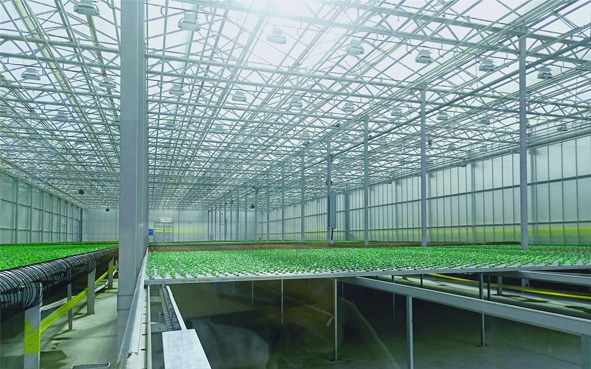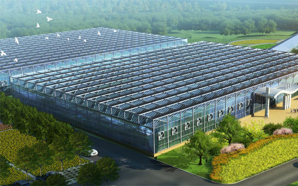 玻璃連棟溫室指以玻璃(單?;蛘咧锌詹AВ┳鞑晒獠牧系臏厥遥瑢儆谥悄軠厥掖笈锏囊环N ,在栽培設(shè)施中,;連棟玻璃溫室作為使用壽命最長的一種形式, 適合于多種地區(qū)和各種氣候條件下使用。